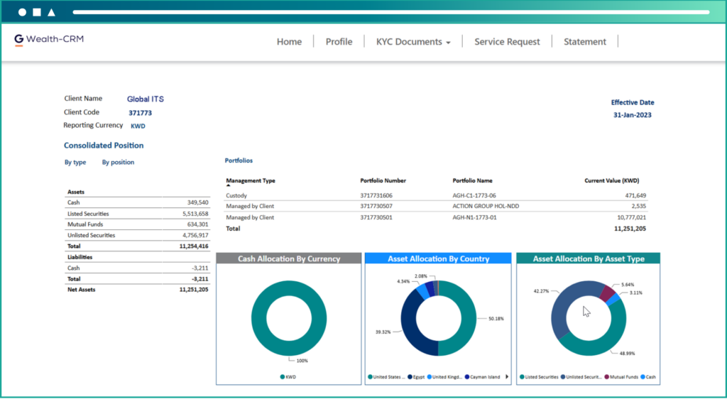 Client Portal: Provides clients with a portal to view their investments and reports.